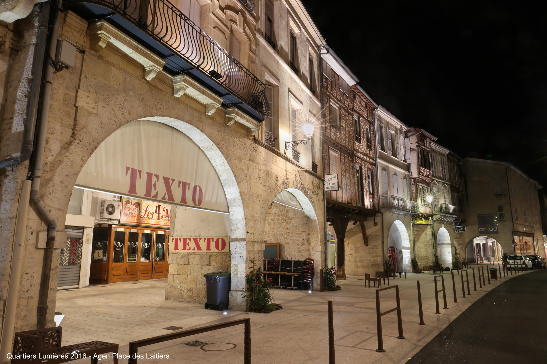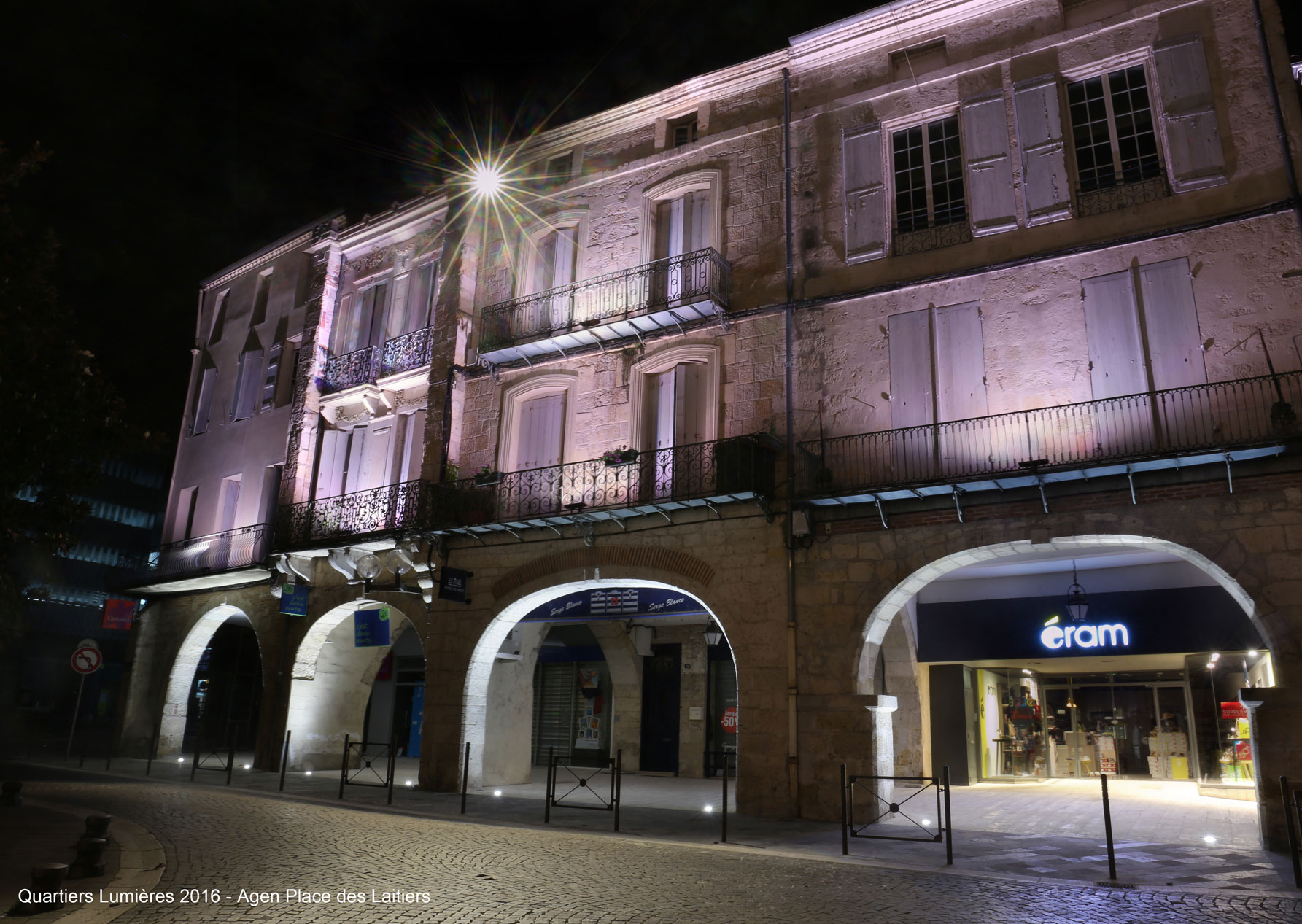 La rue des Cornières est un axe historique majeur du centre ville d’Agen. La rénovation de cet espace se fait par la mise en oeuvre d’éléments d’éclairage en harmonie avec le site de jour comme de nuit.