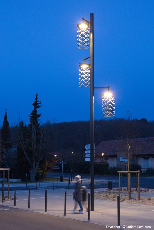Les éclairages fonctionnels sont assurés par des luminaires LEDs 3000 K, bi-puissance, tandis que les espaces majeurs sont identifiés par des ensembles spécifiques réalisés à partir de luminaires catalogues habillés d’une résille métallique inspirée du passé industriel textile de la ville.
