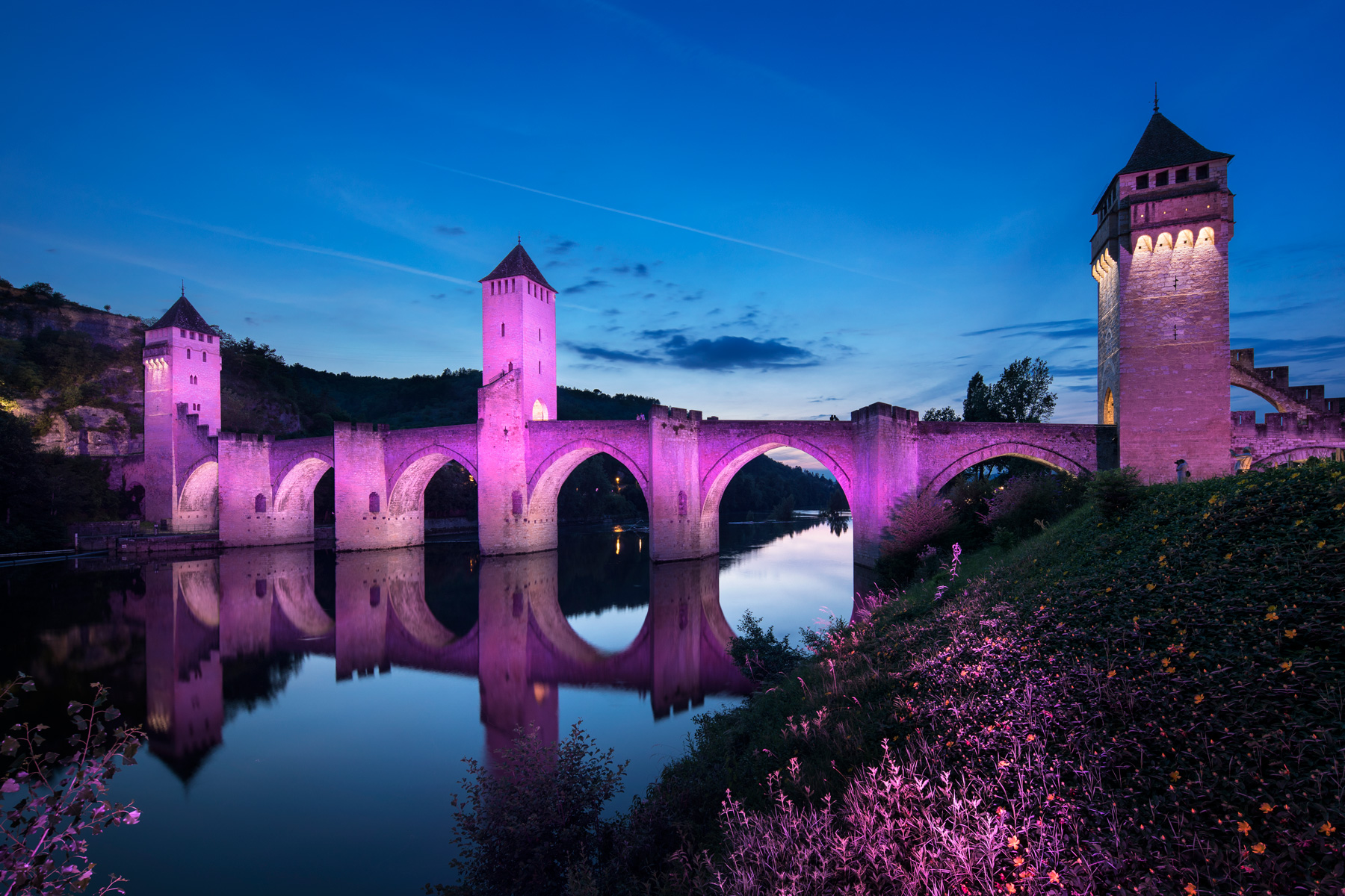 La mise en lumière du Pont Valentré, magnifique pont fortifié du XIVe, lui a permis de retrouver sa splendeur nocturne. Le travail de Quartiers Lumières a été guidé par la volonté de révéler le pont dans le plus grand respect de l’édifice. Aucun équipement ne devant être fixé sur l’édifice.
