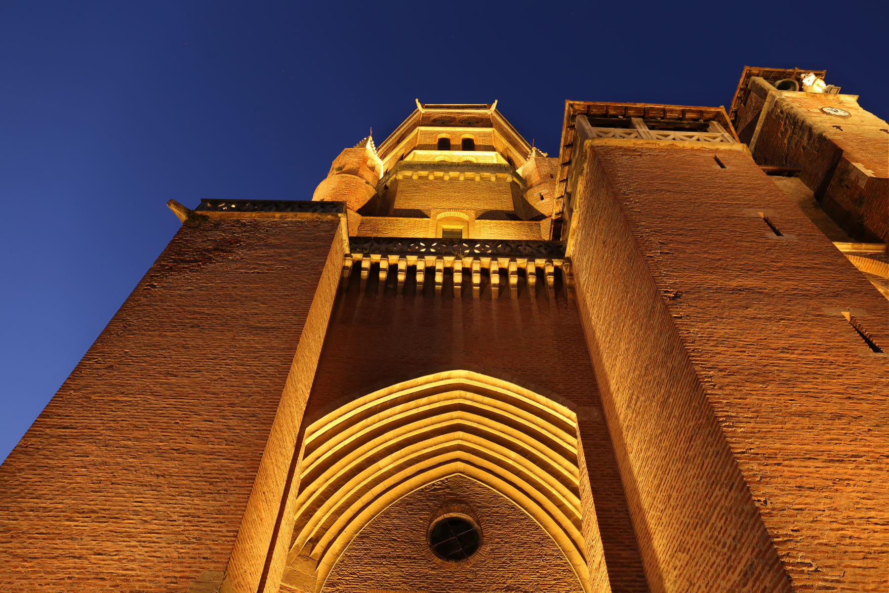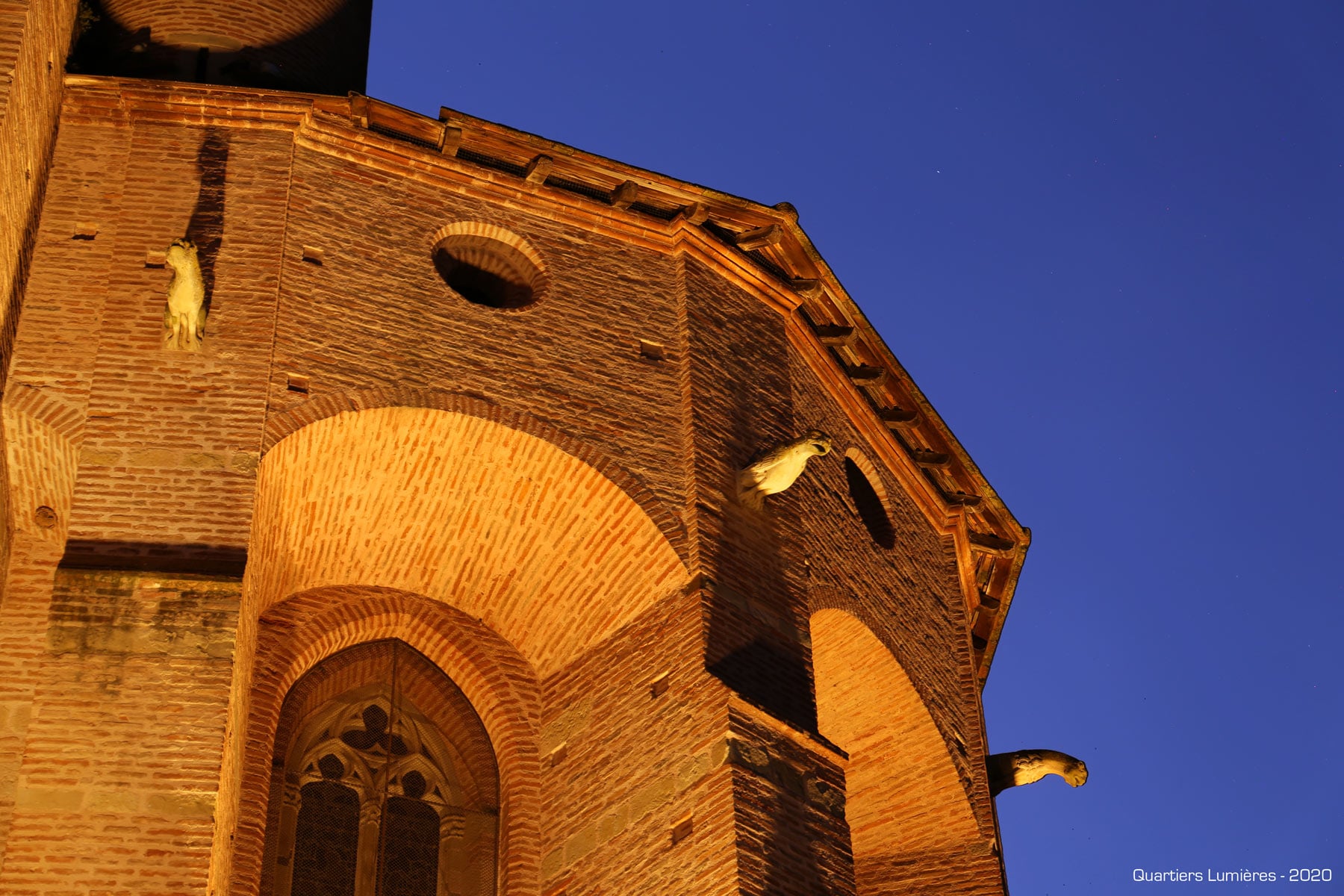 Comme pour tout édifice patrimonial classé monument historique, le principal défi était de créer une mise en lumière discrète, durable et réversible. Le projet devait également s’inscrire dans le contexte urbain de Lavaur. Nous avons donc fait le choix d’un concept de mise en valeur simple, sobre et élégant, avec une attention particulière accordée à la qualité de la lumière en 2700K pour révéler les teintes particulières des briques roses, des reliefs, contrastes et volumes. Un autre défi consistait à révéler les sculptures extérieures dans le contexte délicat d’une architecture médiévale imposante offrant peu d’options pour masquer les équipements d’éclairage.