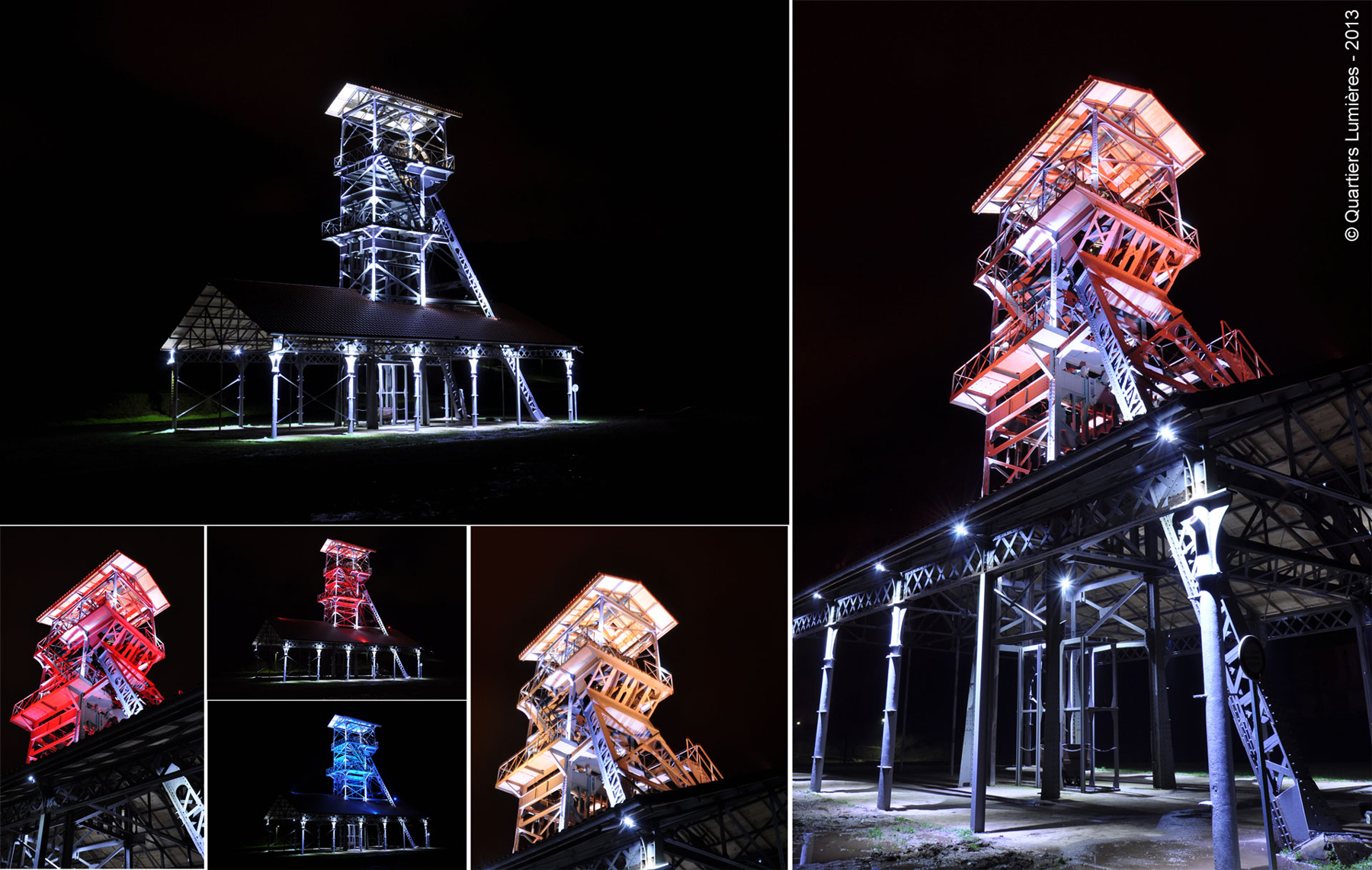 La mise en lumière a pour objectifs de révéler l’architecture du site et de lui donner une nouvelle vie. Les volumes se dessinent, le chevalement «travaille» au rythme d’une lente respiration lumineuse. Les puissances et couleurs de lumière émises sont contrôlables : elles offriront des teintes douces, des rythmes lents au quotidien et des programmations festives pour les événements.