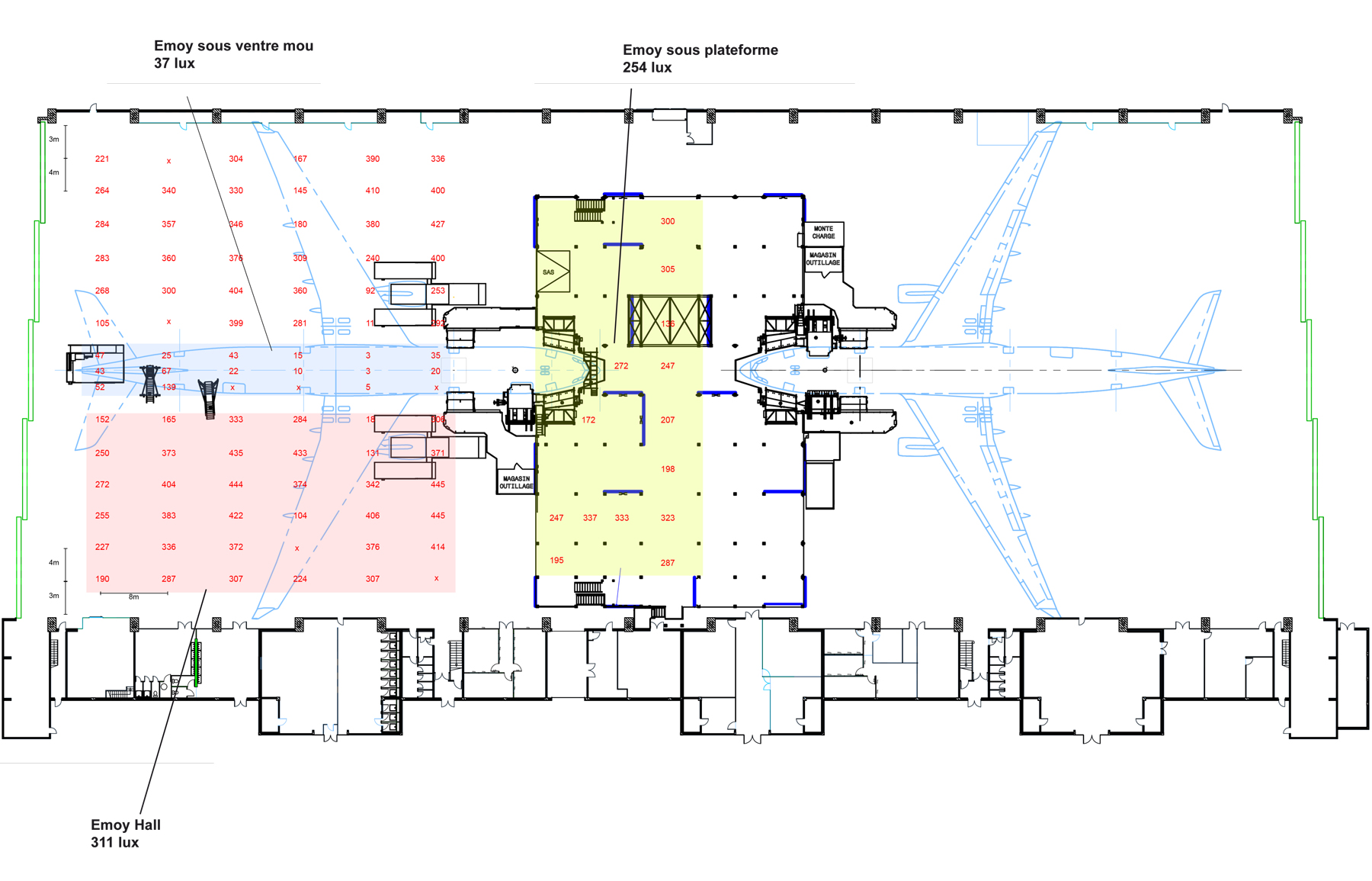 Dans l’optique de renouveler les éclairages des hangars M90 et M15, Airbus a fait appel à Quartiers Lumières afin de réaliser des études d’éclairage qui permettront de déterminer quel type de matériel serait plus adapté.