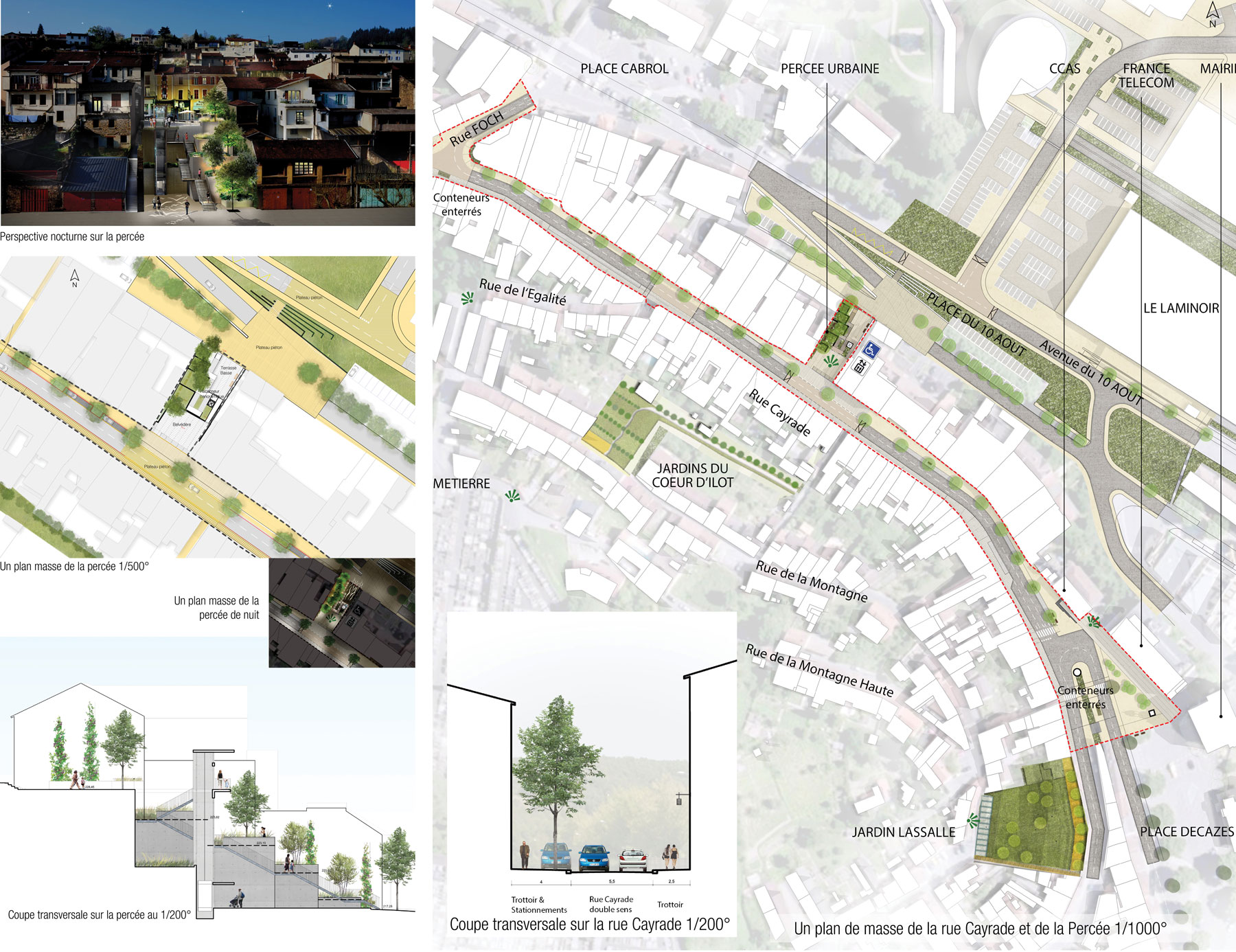 La ville de Decazeville a lancé une opération de revitalisation de son centre ville porté par un projet d’urbanisme sur la rue Cayrade et la nouvelle percée permettant de créer un lien entre la ville haute et la ville basse.